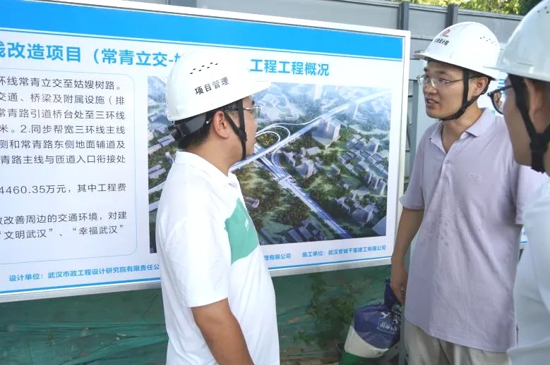 ? ? 在三環(huán)線改造項(xiàng)目(常青立交—姑嫂樹路)工程現(xiàn)場(chǎng),武漢市政院綜合設(shè)計(jì)院項(xiàng)目負(fù)責(zé)人和技術(shù)人員正在頂著烈日檢查施工情況。由于三環(huán)線常青立交附近地下管線錯(cuò)綜復(fù)雜且地面交通流量巨大,他們既要協(xié)調(diào)單位內(nèi)部各專業(yè),還要與建設(shè)、施工和監(jiān)理單位溝通,在保證項(xiàng)目按計(jì)劃進(jìn)度推進(jìn)的同時(shí)確保對(duì)交通造成的影響降到最低。雖然項(xiàng)目現(xiàn)場(chǎng)熱浪滾滾,但他們?nèi)砸燥枬M的熱情為項(xiàng)目按時(shí)順利通車貢獻(xiàn)自己的力量。