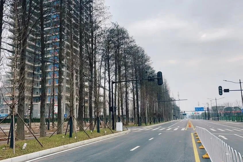 ? ? 在興盛路附近,保留了原有的200余株近40年樹(shù)齡的水杉,形成了獨(dú)特的水杉景觀帶。這些水杉不僅是城市的歷史記憶,也與現(xiàn)代化的工程建設(shè)完美融合,體現(xiàn)了自然與人文的和諧統(tǒng)一。