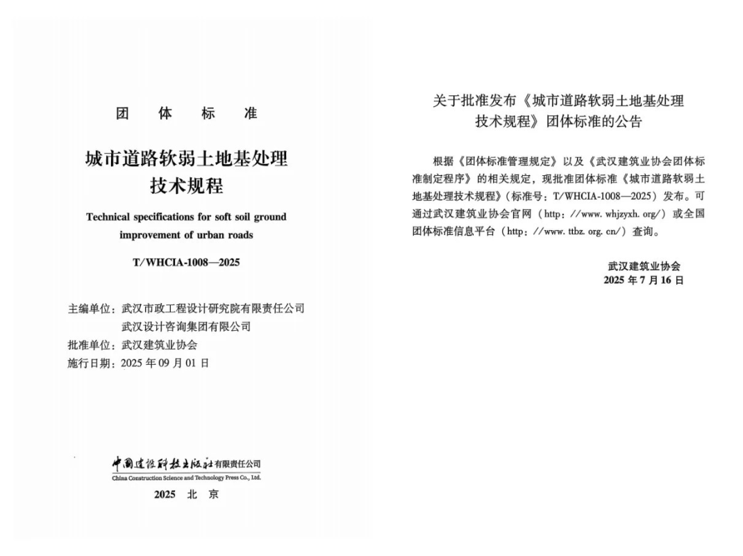 武漢市政院與武漢設(shè)計咨詢集團聯(lián)合主編的團體標準《城市道路軟弱土地基處理技術(shù)規(guī)程》,已由武漢建筑業(yè)協(xié)會批準發(fā)布。該規(guī)程是國內(nèi)首部專門針對城市道路軟弱土地基處理的技術(shù)標準,有效解決了現(xiàn)行建筑與公路規(guī)范在市政道路工程中存在的諸多不明確、不統(tǒng)一的應用問題。其內(nèi)容系統(tǒng)全面,兼具實用性與先進性,既體現(xiàn)了市政行業(yè)特色,又契合城市道路實際建設(shè)需求,對湖北省內(nèi)城市道路軟弱土地基處理的設(shè)計、施工、關(guān)鍵技術(shù)方法及檢測監(jiān)測等方面提供了權(quán)威依據(jù)與科學指導。該《規(guī)程》整體達到國內(nèi)先進水平,在行業(yè)與省內(nèi)居于領(lǐng)先地位。它的發(fā)布進一步鞏固了武漢市政院在市政巖土工程領(lǐng)域的技術(shù)優(yōu)勢,顯著提升了公司的行業(yè)影響力與核心競爭力。