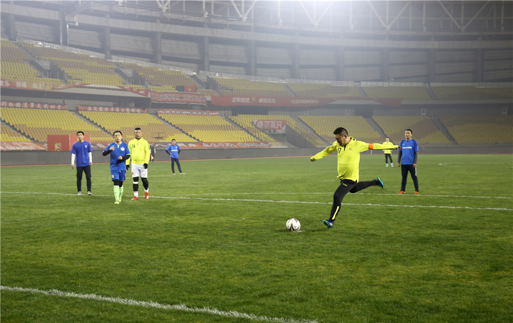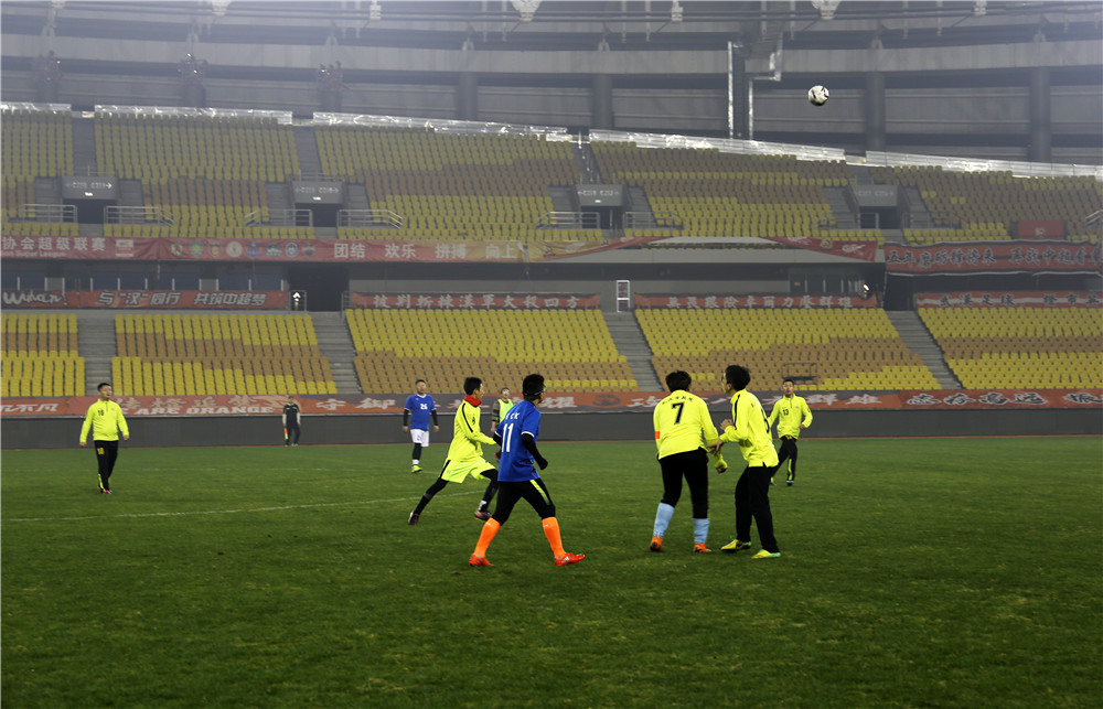 五環(huán)體育中心是武漢市為舉辦第七屆世界軍人運(yùn)動(dòng)會(huì)新建的規(guī)模最大的比賽場(chǎng)館,曾承擔(dān)了軍運(yùn)會(huì)足球、乒乓球、水上救生等項(xiàng)目的比賽。盡管軍運(yùn)會(huì)已經(jīng)過去近三個(gè)月了,但如今置身其中,仍然能感受到軍運(yùn)賽事帶來的澎湃與激情。或許這種情緒也感染著場(chǎng)上的隊(duì)員們,他們從一開始就迅速進(jìn)入了比賽狀態(tài),身穿藍(lán)色球衣的東西湖區(qū)聯(lián)隊(duì)在開場(chǎng)不久便率先破門攻入一球,但公司的隊(duì)員們?nèi)匀环€(wěn)扎穩(wěn)打,很快就將比分扳平。重回同一起跑線的兩隊(duì)在隨后的比賽中更是你來我往,展開了高質(zhì)量的攻防大戰(zhàn),比分交替領(lǐng)先,最終雙方又各進(jìn)四球,在一場(chǎng)精彩的進(jìn)球大戰(zhàn)后以5:5的比分握手言和。