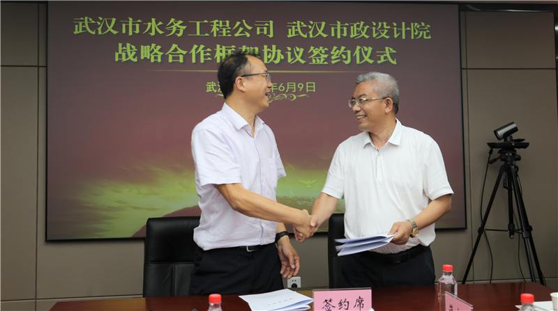2020年6月9日下午,公司與武漢市水務建設工程有限公司簽訂戰(zhàn)略合作框架協議,雙方將依托各自優(yōu)勢資源,在城市水務建設、市政基礎設施建設等多領域展開深度合作。武漢市水務建設工程有限公司經理程飛、黨委書記陳軍、副經理宋萍森,公司董事長武興治、總經理姚華、副總經理周俊等出席了簽約儀式。