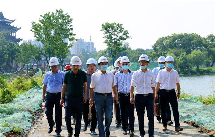 紫陽湖“大湖+”工程是武漢市全面推進“大湖+”建設的第一個樣板湖區(qū)工程,也是武昌區(qū)實現(xiàn)“大湖+”主題功能區(qū)的重點示范項目。武興治一行詳細檢查了項目現(xiàn)場管理情況,認真聽取了項目情況匯報,對項目建設提升效果和現(xiàn)場安全文明施工管理情況表示肯定。他指出,當前全市正經(jīng)受著防疫、防汛、防高溫的多重考驗,既要保證項目進度,更要保證建設安全。武興治要求現(xiàn)場管理人員要牢固樹立安全生產(chǎn)意識,不懈怠、不松勁,嚴格落實安全生產(chǎn)文明施工及防暑降溫各項措施,合理安排作業(yè)時間,確保項目安全順利完工。