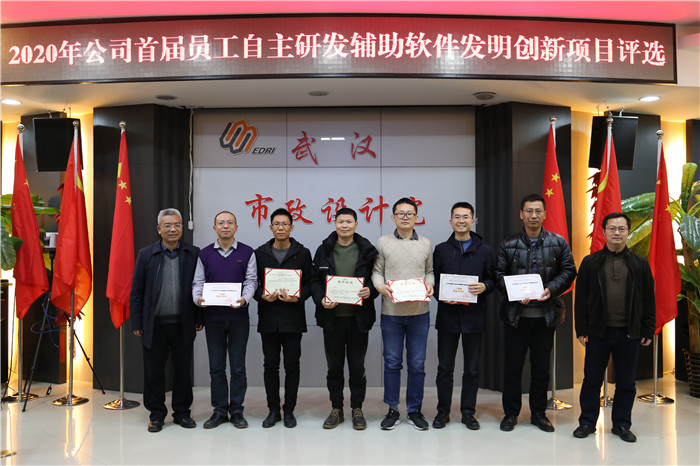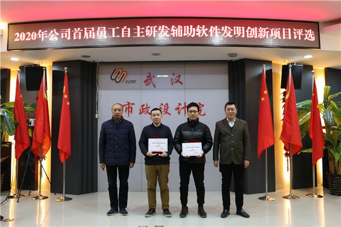 經(jīng)過(guò)精彩的匯報(bào)和評(píng)委們的認(rèn)真評(píng)價(jià),來(lái)自交通研究院張燦的《武漢市政規(guī)劃設(shè)計(jì)平臺(tái)》和來(lái)自荊門分公司劉盾的《CAD輔助設(shè)計(jì)軟件》獲得了本次比賽的一等獎(jiǎng),二、三等獎(jiǎng)也各有歸屬,公司領(lǐng)導(dǎo)為獲獎(jiǎng)項(xiàng)目頒獎(jiǎng),并與軟件開發(fā)者合影留念。