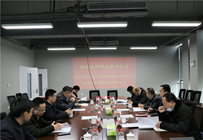2021年3月3日下午,武漢市政設(shè)計(jì)院與武大巨成結(jié)構(gòu)股份有限公司在漢簽署戰(zhàn)略合作框架協(xié)議,雙方將充分發(fā)揮各自優(yōu)勢,創(chuàng)新合作模式,拓寬合作渠道,在結(jié)構(gòu)加固技術(shù)領(lǐng)域,針對新設(shè)備、新材料、新工藝的應(yīng)用開展交流合作。武漢市政設(shè)計(jì)院總經(jīng)理姚華、副總經(jīng)理陳建斌、總經(jīng)理助理呂錦剛與武大巨成公司董事長高作平、總經(jīng)理萬雄衛(wèi)、副總經(jīng)理廖杰洪、副總經(jīng)理張暢及相關(guān)人員出席了簽約儀式。
