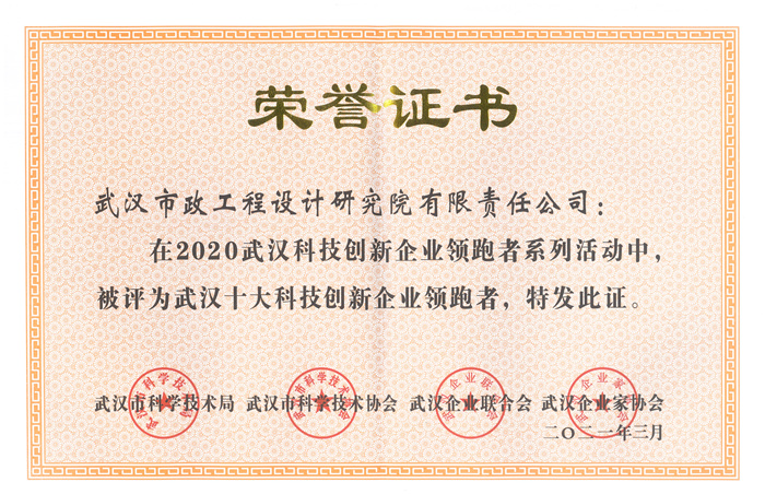 2021年4月15日,武漢創(chuàng)新與創(chuàng)業(yè)高峰論壇暨武漢科技創(chuàng)新企業(yè)領(lǐng)跑者系列活動(dòng)頒獎(jiǎng)盛典在武漢電視臺(tái)演播廳隆重舉行,武漢市政設(shè)計(jì)院榮膺“2020年度武漢十大科技創(chuàng)新企業(yè)領(lǐng)跑者”稱號(hào),公司副總經(jīng)理周俊作為嘉賓上臺(tái)領(lǐng)獎(jiǎng)。