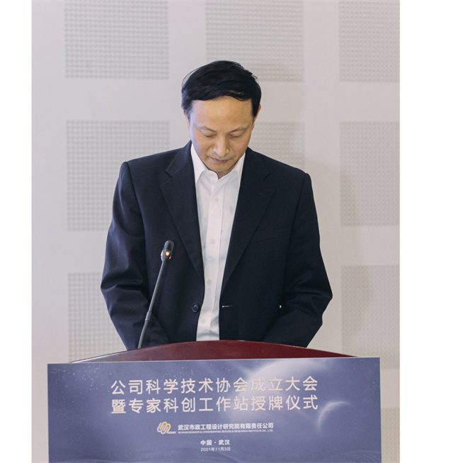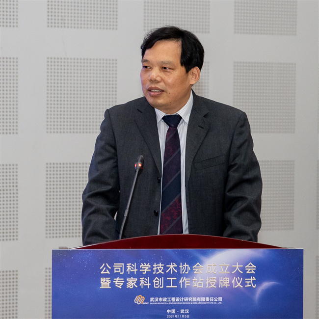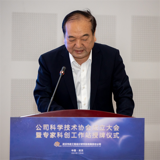 武漢市科協(xié)副主席熊少明為公司專家科創(chuàng)工作站授牌,并為方正教授頒發(fā)了聘書。他指出,市政設(shè)計院科協(xié)的成立,是團(tuán)結(jié)科技工作者、助力企業(yè)發(fā)展的新起點,要切實增強(qiáng)科協(xié)組織的引領(lǐng)力、服務(wù)力和創(chuàng)新力,關(guān)心科技工作者成長,大力宣傳、舉薦優(yōu)秀科技工作者,弘揚(yáng)崇尚科學(xué)家精神,激發(fā)科技工作者的創(chuàng)新、創(chuàng)造熱情,增強(qiáng)科技工作者自豪感和使命感,助力企業(yè)科技創(chuàng)新。