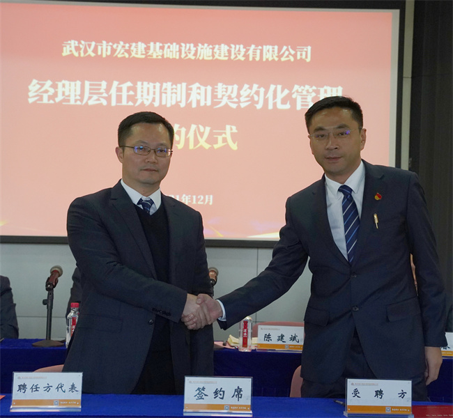 隨后,公司黨委書記、董事長(zhǎng)武興治與黨委副書記、總經(jīng)理陳建斌簽署崗位聘任協(xié)議書,陳建斌分別與公司經(jīng)理層成員和所屬武漢路源工程質(zhì)量檢測(cè)有限公司、武漢市宏建基礎(chǔ)設(shè)施建設(shè)有限公司經(jīng)理層成員簽署崗位聘任協(xié)議書。