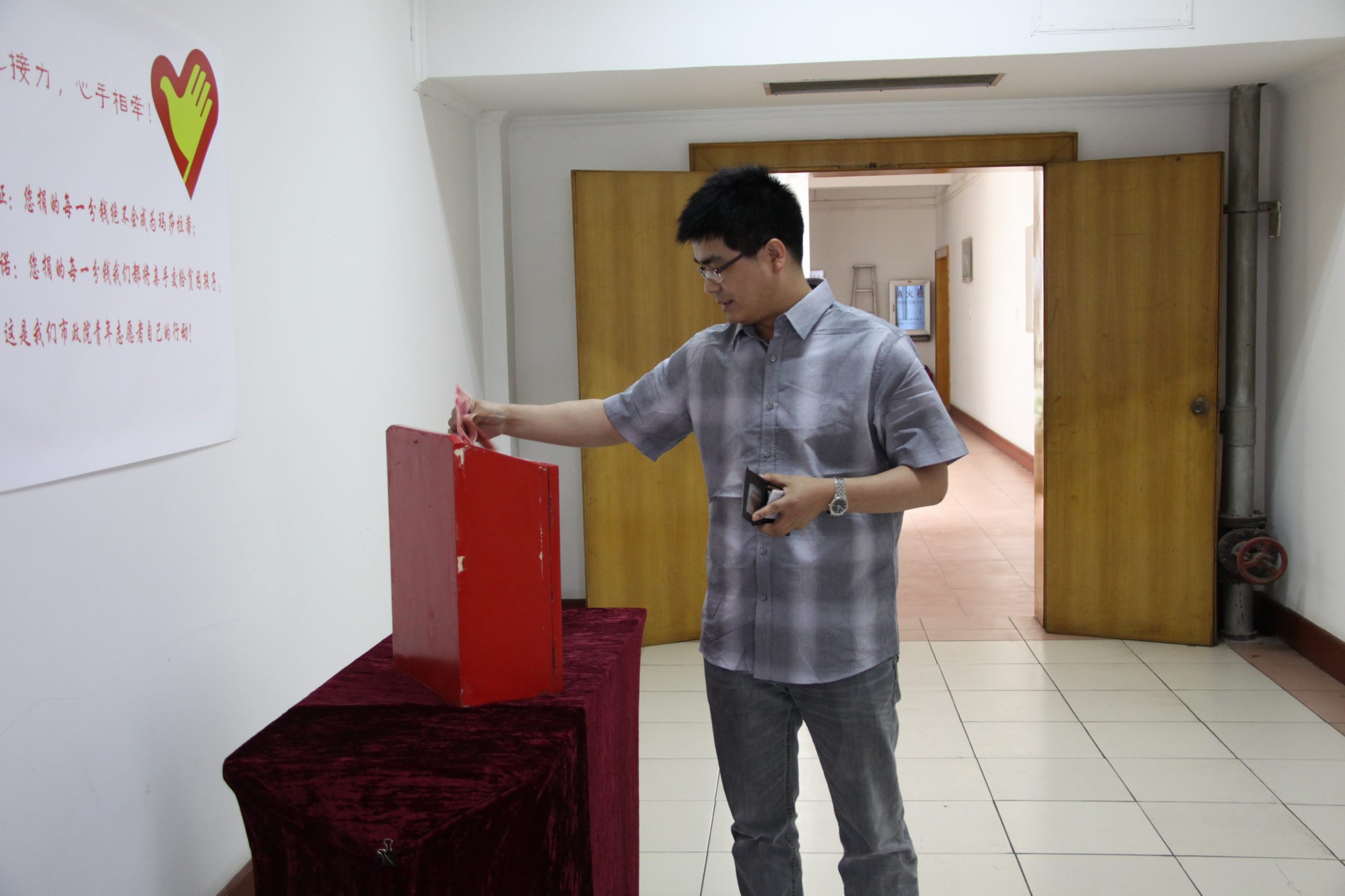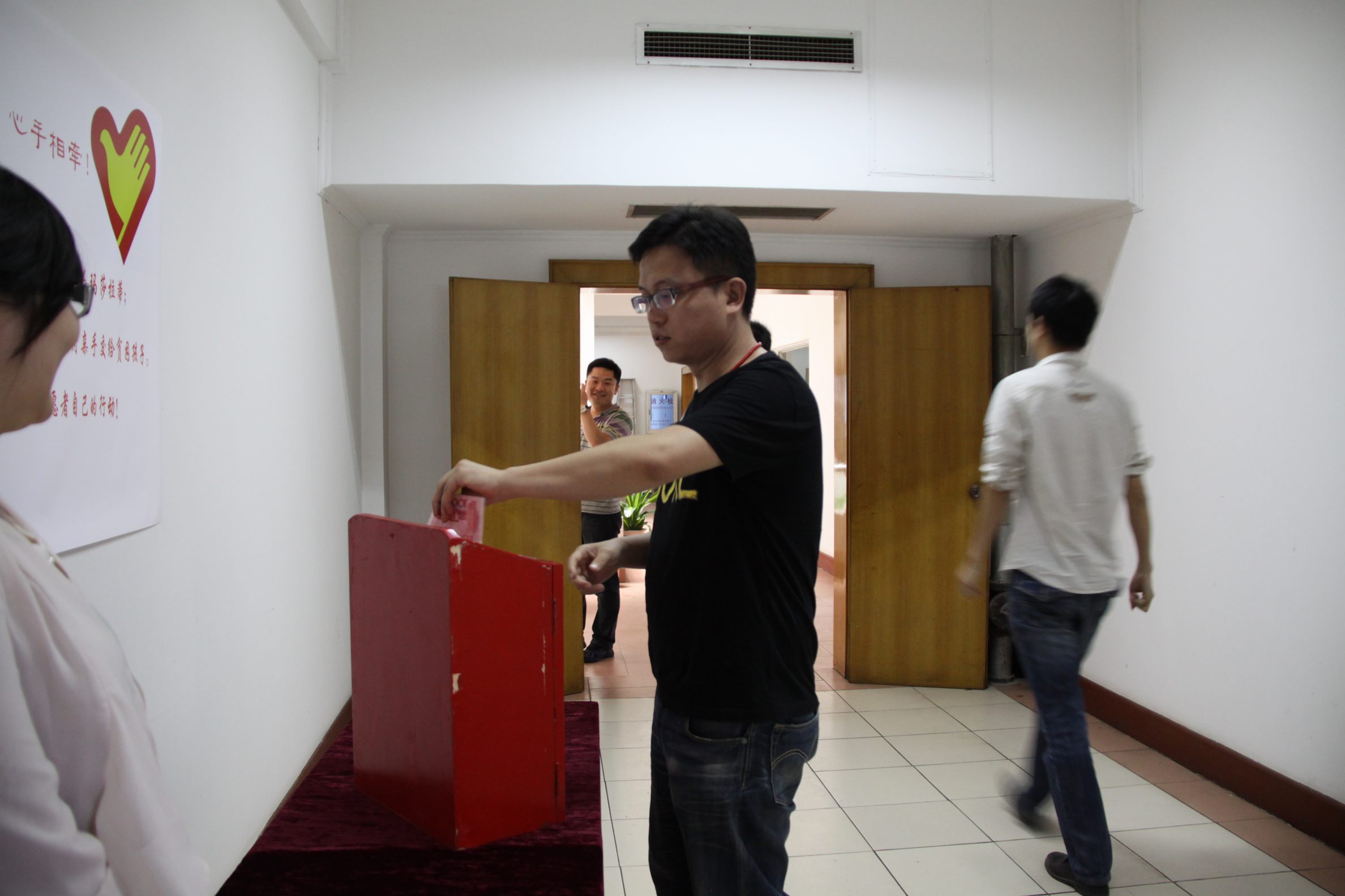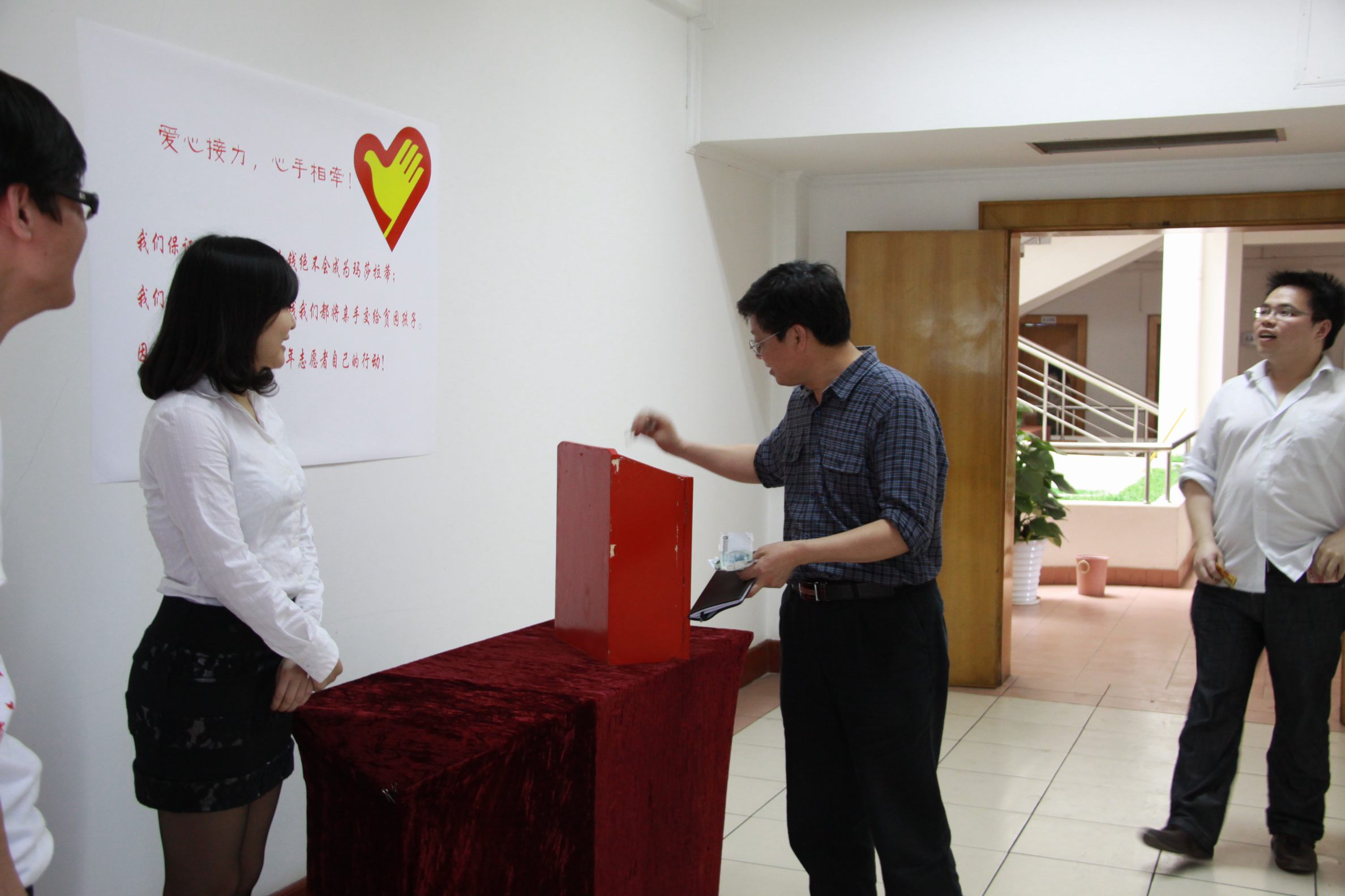 ??? 在“五四”青年節(jié)到來之際,公司青年志愿者代表在食堂設(shè)置了捐款箱,開展愛心募捐活動。孩子們的貧困生活感動了許多人,在得知為學(xué)生募捐的消息后,公司員工紛紛慷慨解囊,一筆筆善款代表著一顆顆愛心,匯聚到捐款箱中,真情在每個人心中涌動、流淌。