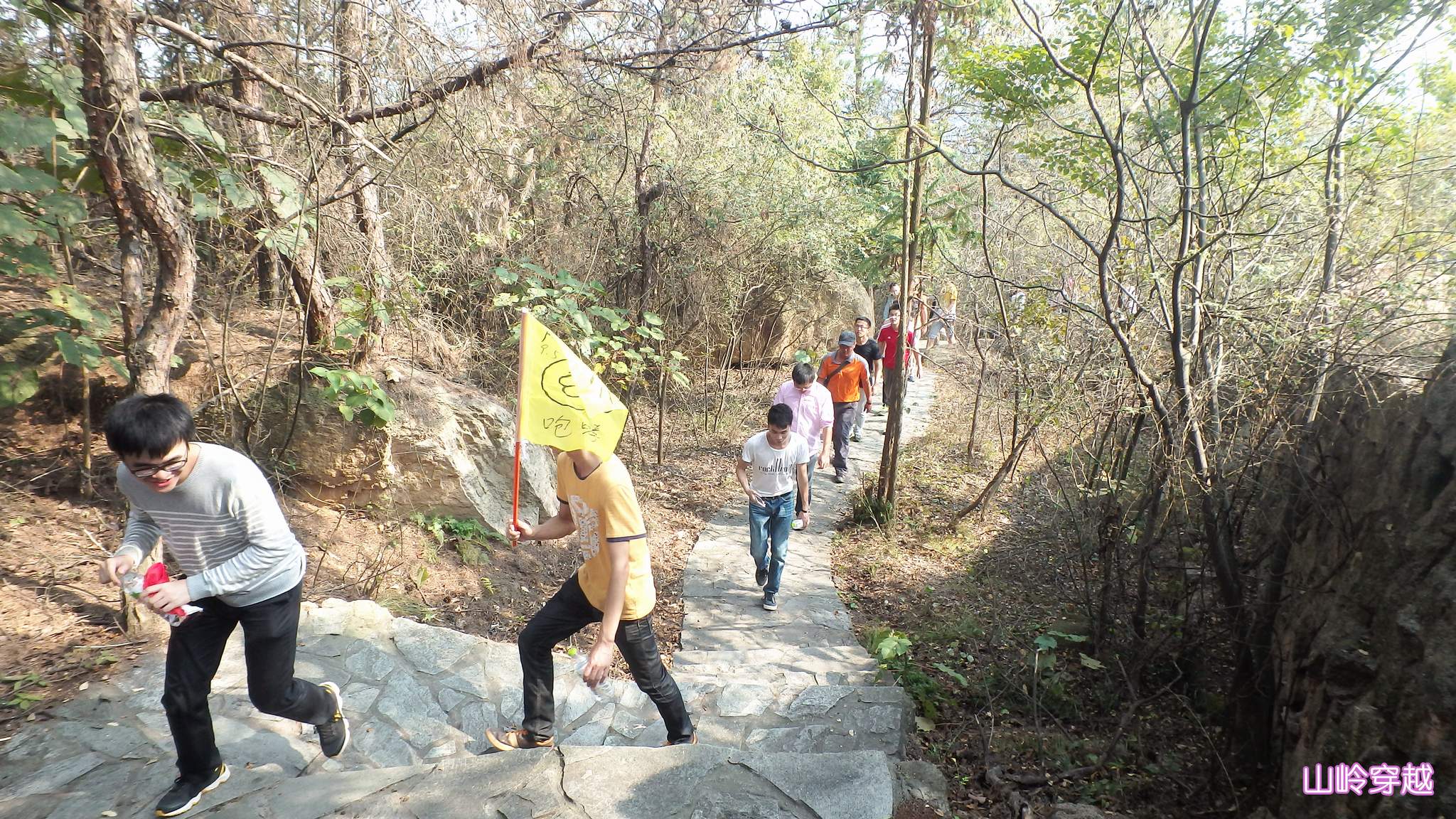??? 經(jīng)過了短暫的休整,隊(duì)員們開始了山嶺徒步,自山腳出發(fā),用了兩個(gè)小時(shí)徒步穿越了古門景區(qū)。一路上,隊(duì)員們有說有笑,相互扶持,互相鼓勵(lì),保證了全部隊(duì)員安全完成徒步穿越。