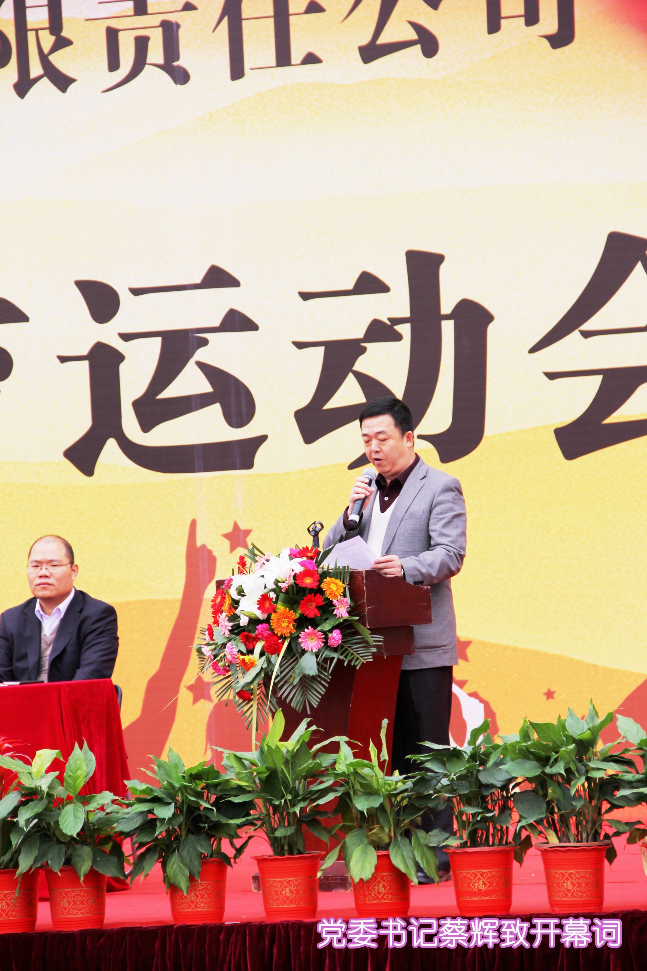 ??? 黨委書記蔡輝同志致開幕詞,他充分肯定了體育文化建設(shè)對公司各項工作的積極促進(jìn)作用,并希望廣大運動員發(fā)揚“頑強(qiáng)拼搏,勇爭第一”的精神,以飽滿的情緒、激昂的斗志、團(tuán)結(jié)向上的精神投入到比賽中,超越自我,勇創(chuàng)佳績。