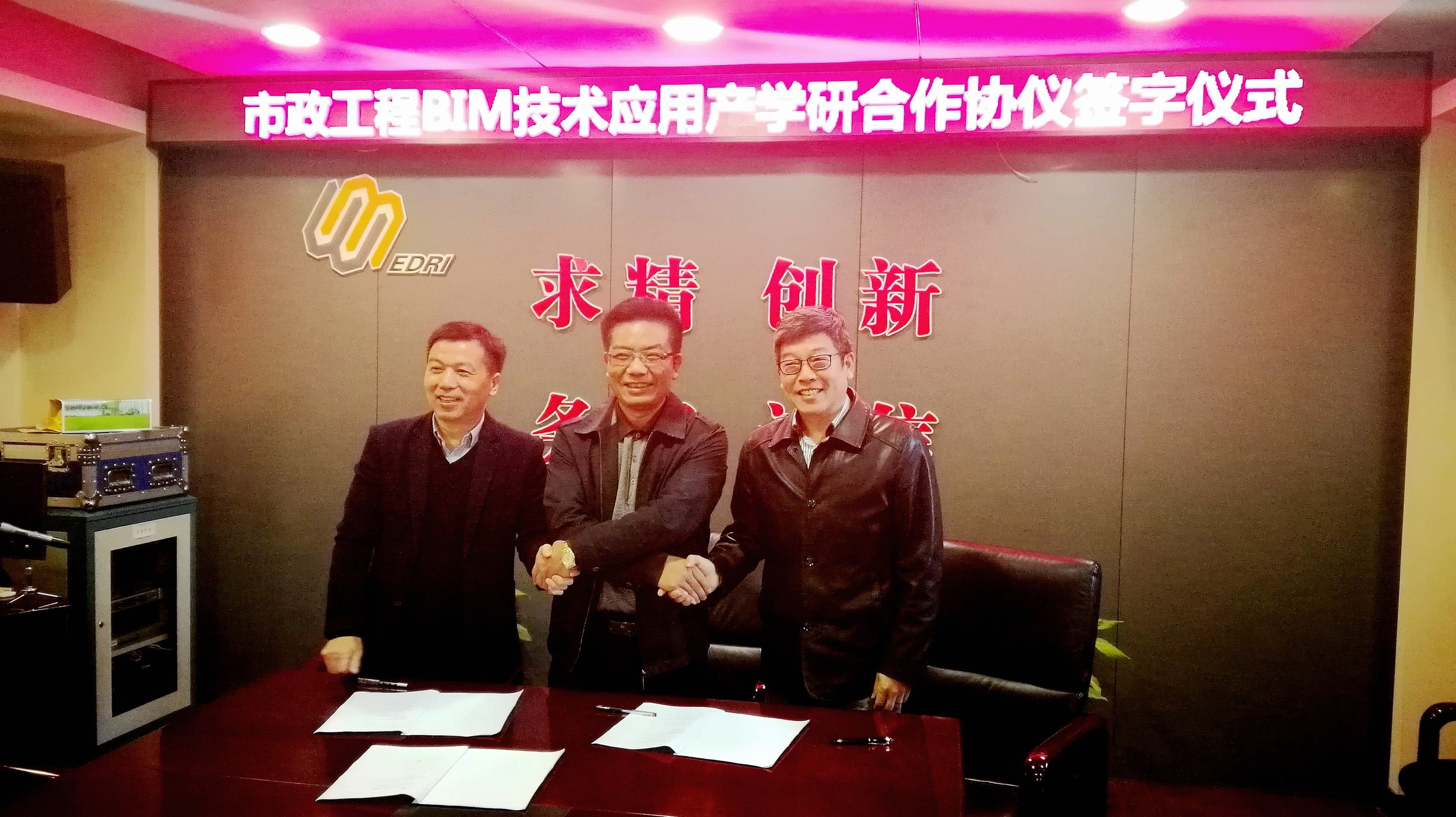 ??? 10月31日上午,市政工程BIM技術應用產(chǎn)學研合作協(xié)議簽字儀式在公司西三樓會議室舉行,公司與武漢工程大學、上海同筑信息科技有限公司就BIM技術在市政工程全生命周期中的應用達成合作協(xié)議,三方期望通過本次合作,推進BIM技術在市政工程設計、施工、運營維護等各階段的應用。