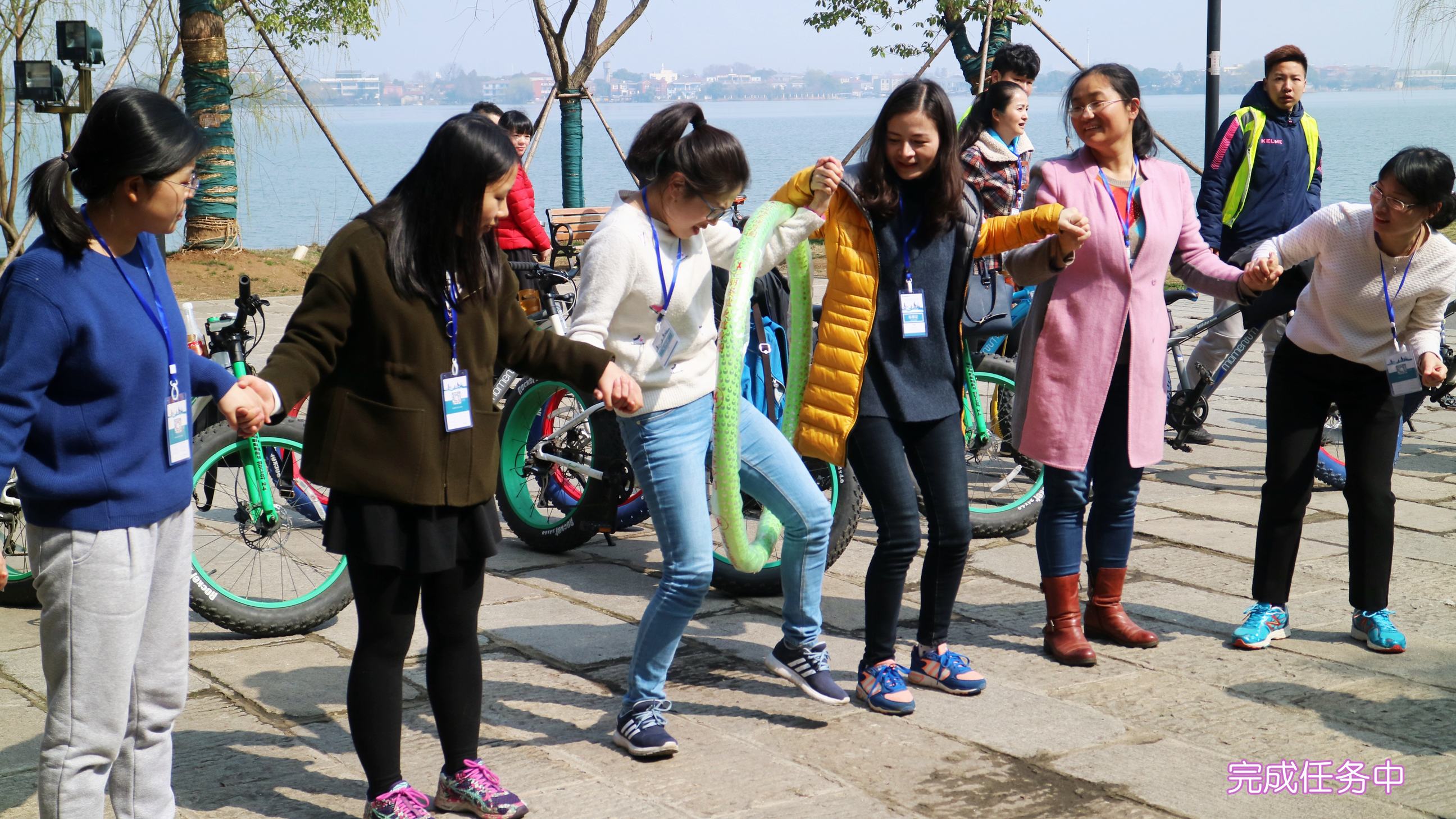 ??? 按照既定的活動安排,活動人員要在騎行過程中經(jīng)過六個(gè)任務(wù)點(diǎn),分別為桃花島、葉家灣、田園童夢、鵝詠陽春、楚城門、楚市,完成既定任務(wù)后獲得相應(yīng)積分,積分最高的隊(duì)伍獲得最終的勝利。